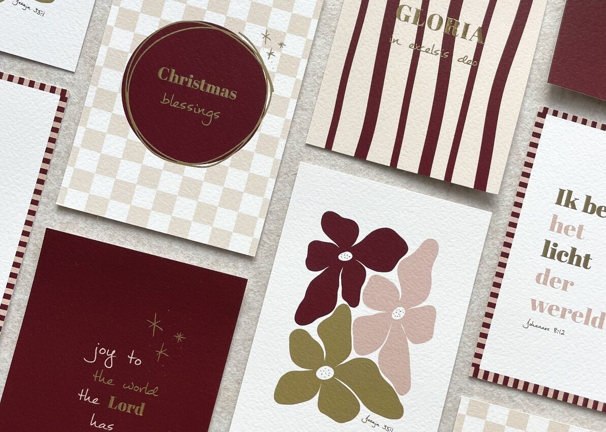 Luxe set feestelijke kerstkaarten,✨ voorzien van prachtig goudfolie. Elke set bevat zes verschillende ontwerpen met zes kraft enveloppen – verfijnd, stijlvol en met liefde gemaakt.